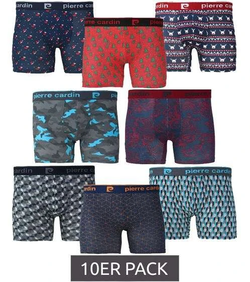 10er Pack Pierre Cardin Herren Boxershorts mit weihnachtlichen, geometrischen, floralen und Camouflage Mustern PCU78 Blau, Grau, Rot