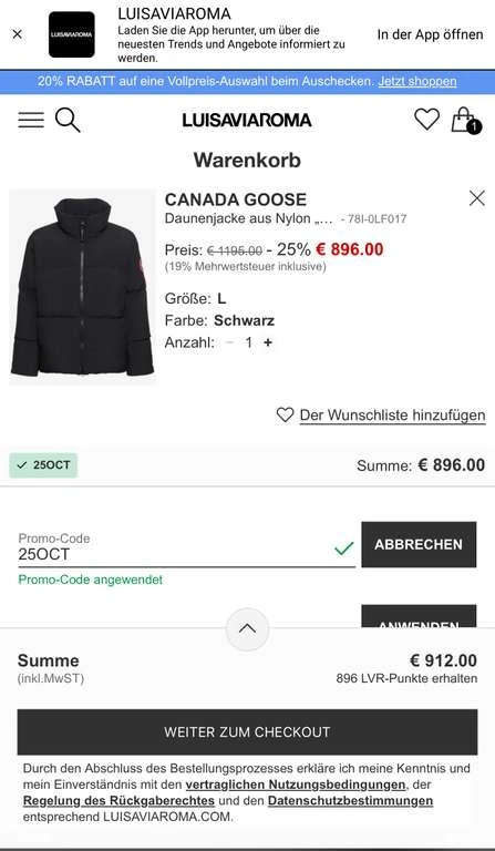 über den Shop Luisaviaroma erhaltet ihr aktuell 25% Rabatt auf Canada Goose Jacken.