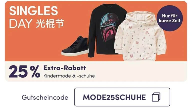 Ihr erhaltet 25% Rabatt zusätzlich auf Bekleidung und auch auf Schuhe, der Code lautet „MODE25SCHUHE“.