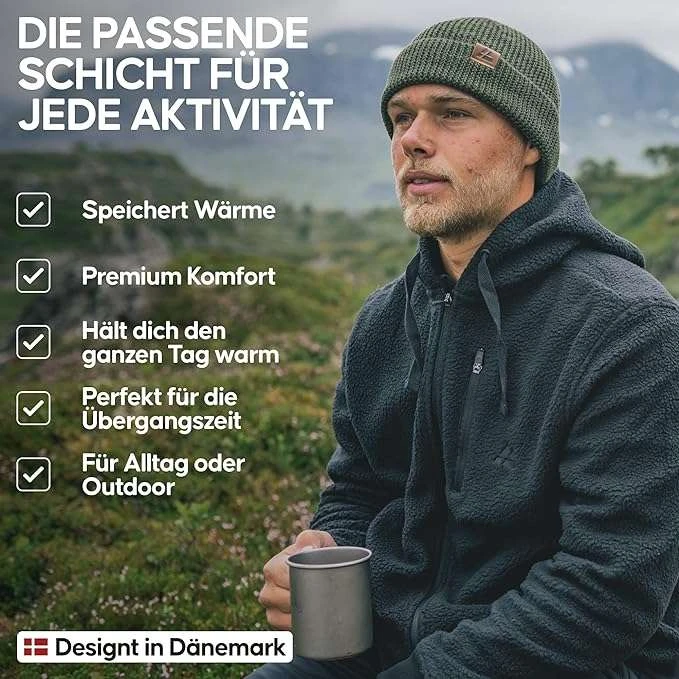 - der elastische Saum sorgt dafür, dass die Wärme bei allen Outdoor-Aktivitäten drinnen bleibt