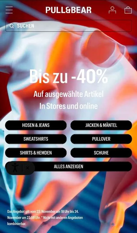 Gibt zum bf bis zu 40% Rabatt auf fast alles bei Pull & Bear