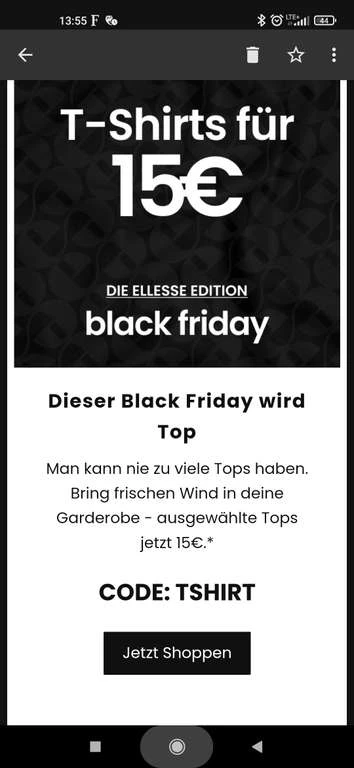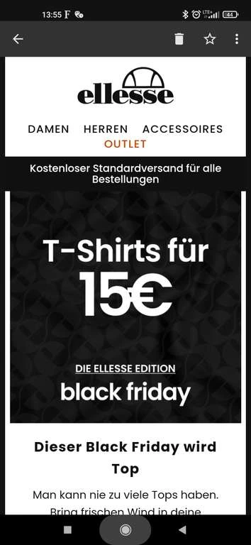 bei Ellesse gibt es zum Black friday ausgewählte T-Shirts für sie und ihn zum Preis von 15 Euro das Stück mit dem Code „TSHIRT“.