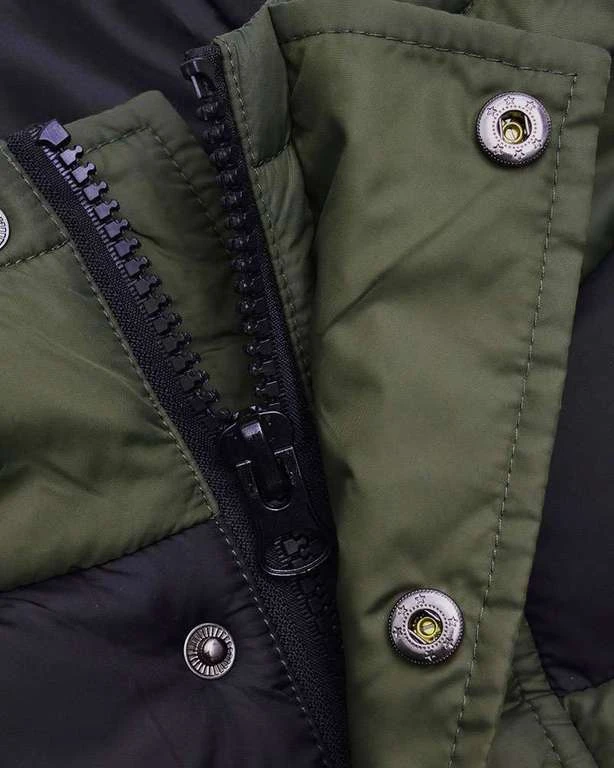 - durchgehender Reißverschluss mit darüberliegendem Druckknopfverschluss