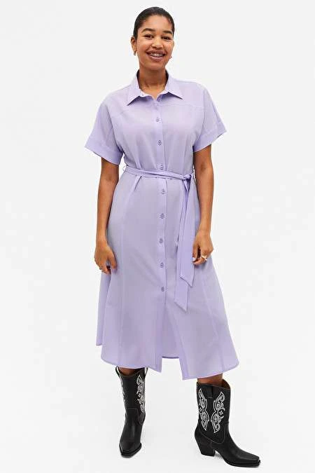 Schwarzes Midi-Hemdkleid mit Gürtel, Muster mit kleinen weißen Blumen, Hemdkragen und abgerundetem Saum. Aus einem superweichen, leichten Stoff!