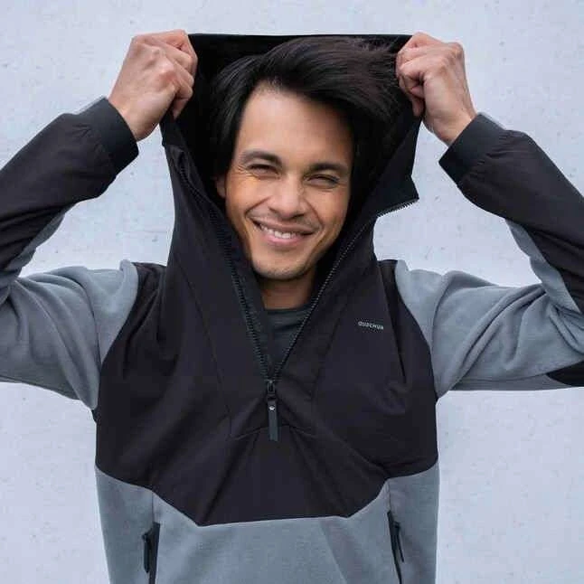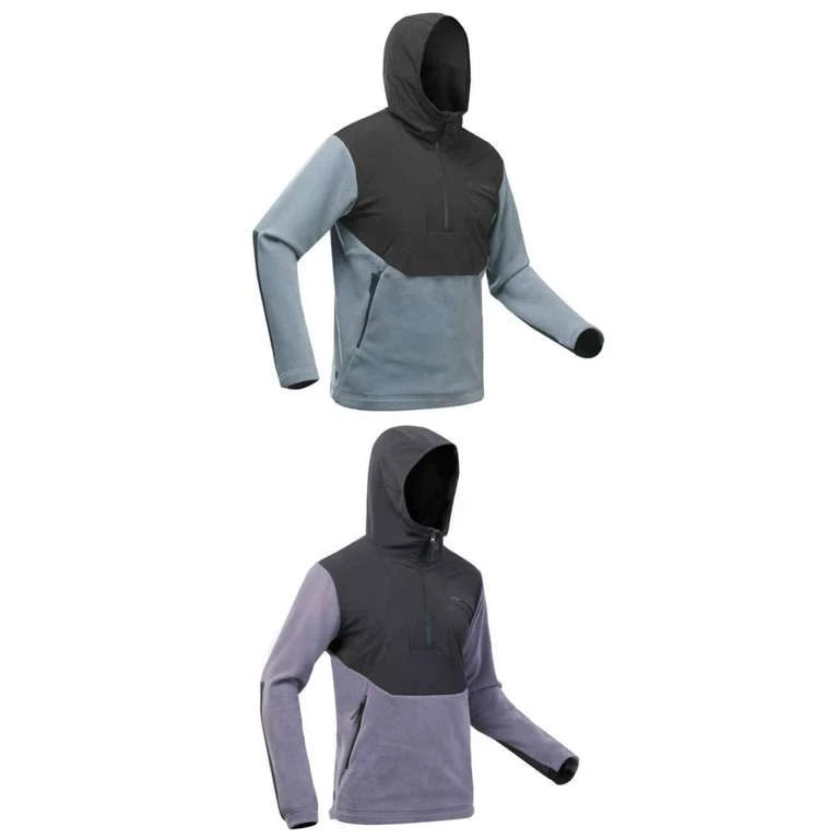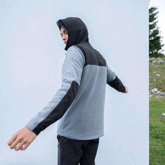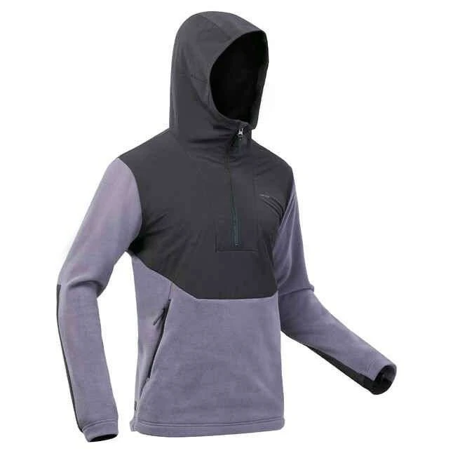 Quechua Herren Fleecepullover mit Kapuze MH500, warm, Farbe Asphaltgrau-Schwarz, Größen M L-3XL und Farbe Violett-Schwarz, Größen L XL-2XL für