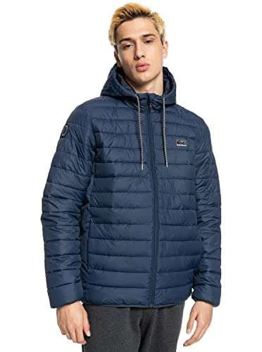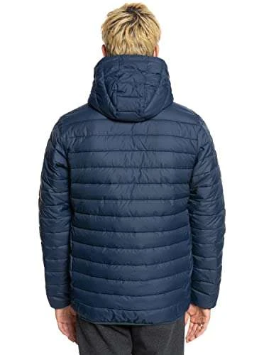 Steppjacke für Männer. Die Eigenschaften dieses Produkts sind: Recycelter Stoff: Recycelter Polyesterstoff [70 g/m2], klassischer, komfortabler Regular Fit, Fixe 3-Panel-Kapuze, Taft-Futter, versteckte Reißverschlusstasche an der Seite, Reißverschluss auf der Vorderseite mit Klettband, Elastische Einfassung an den Bündchen und unten und Kordelzug an der Kapuze.