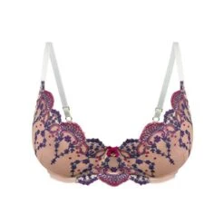 Schwarzes Set, gefertigt aus Tüll und Spitze, bestehend aus BH, Strumpfhaltergürtel und String-Tanga. Die Träger und Strumpfhalter sind verstellbar. Der Gürtel wurde mit Stäbchen verstärkt und hat eine Hakenverschlussleiste auf der Rückseite.